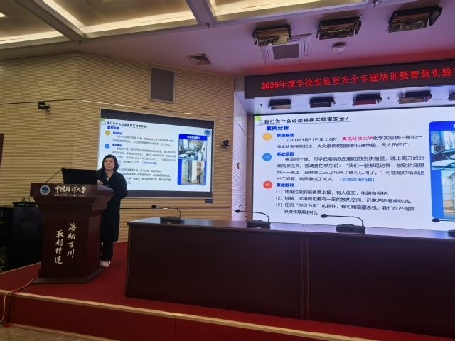 11月13日上午,学校实验室安全管理专题培训会议在崂山校区图书馆第二会议室召开。各二级教学科研单位实验室安全管理员、联络员、学院安全员代表及第五届校实验室安全督导员等130余人参会,国有资产与实验室管理处副处长徐宋娟出席会议并讲话。